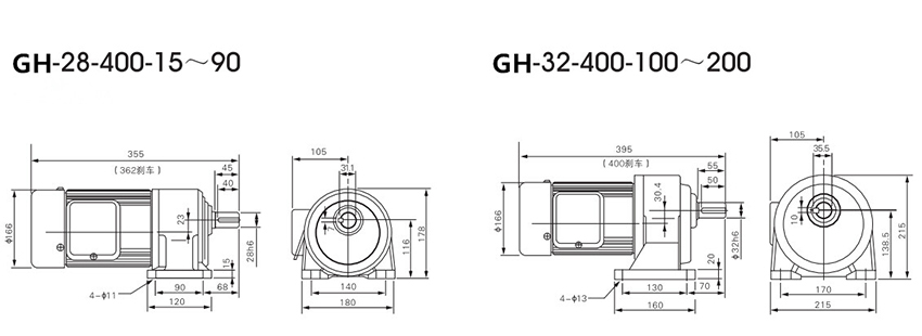 0.4KW-GH卧式-单相/三相(刹车)减速电机