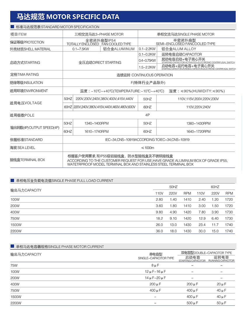5、根據電源電壓,選擇適合的接線方式接好電機線盒內接線。接線盒內接線錯誤會導致電機燒毀。根據電機銘牌上的額定電流,建議按5A/mm2的電流密度選擇合適尺寸的電纜線給電機供電。
