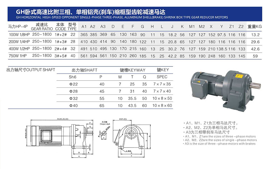 1、請選用標準框號齒輪減速馬達,如特殊原因需選擇縮框型齒輪减速马達時,負載必須地獄正常負載。