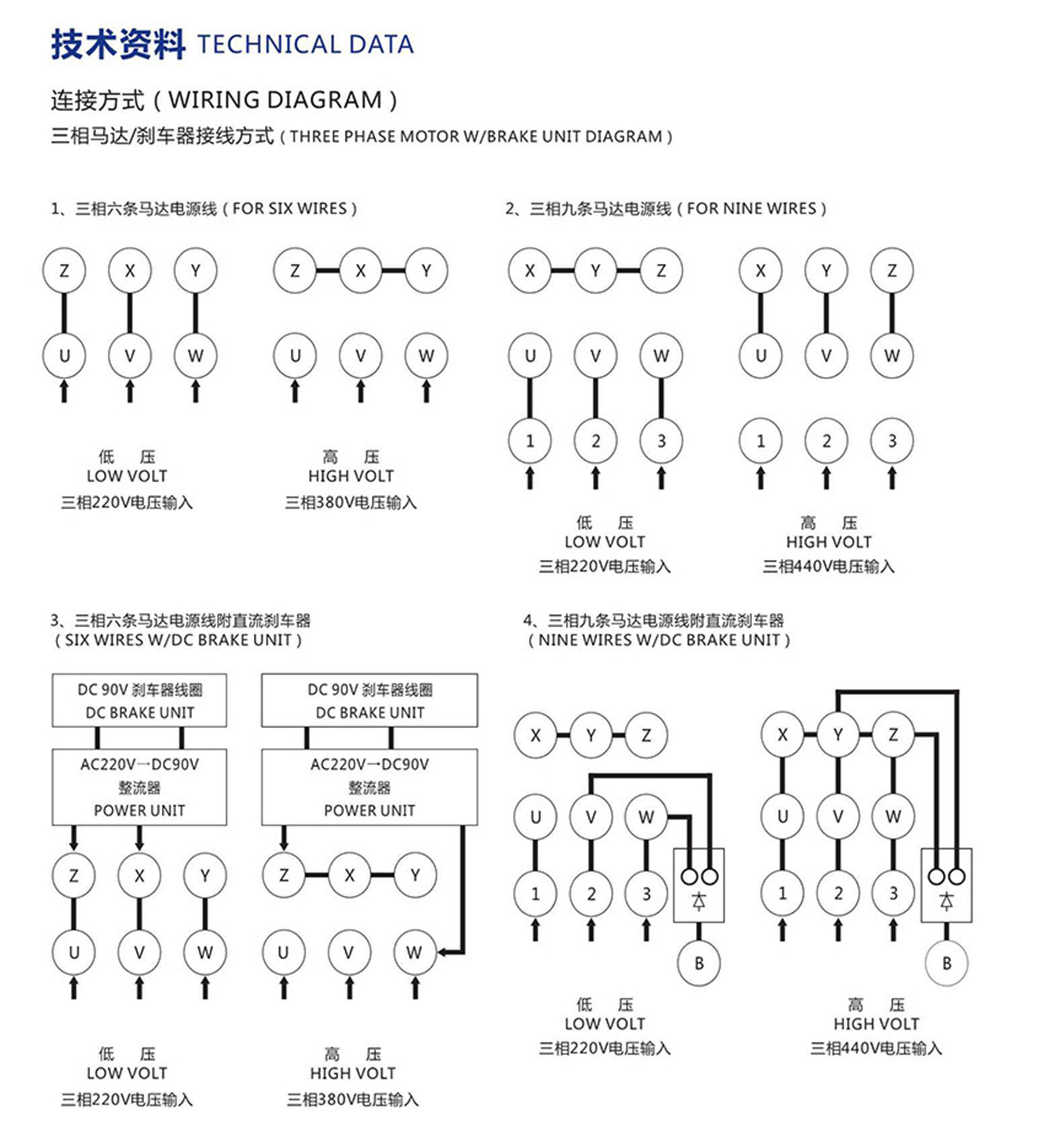 4、電機反轉時,單相電機按接線圖進行調整。三相電機只需要將電源線中兩相對調即可。